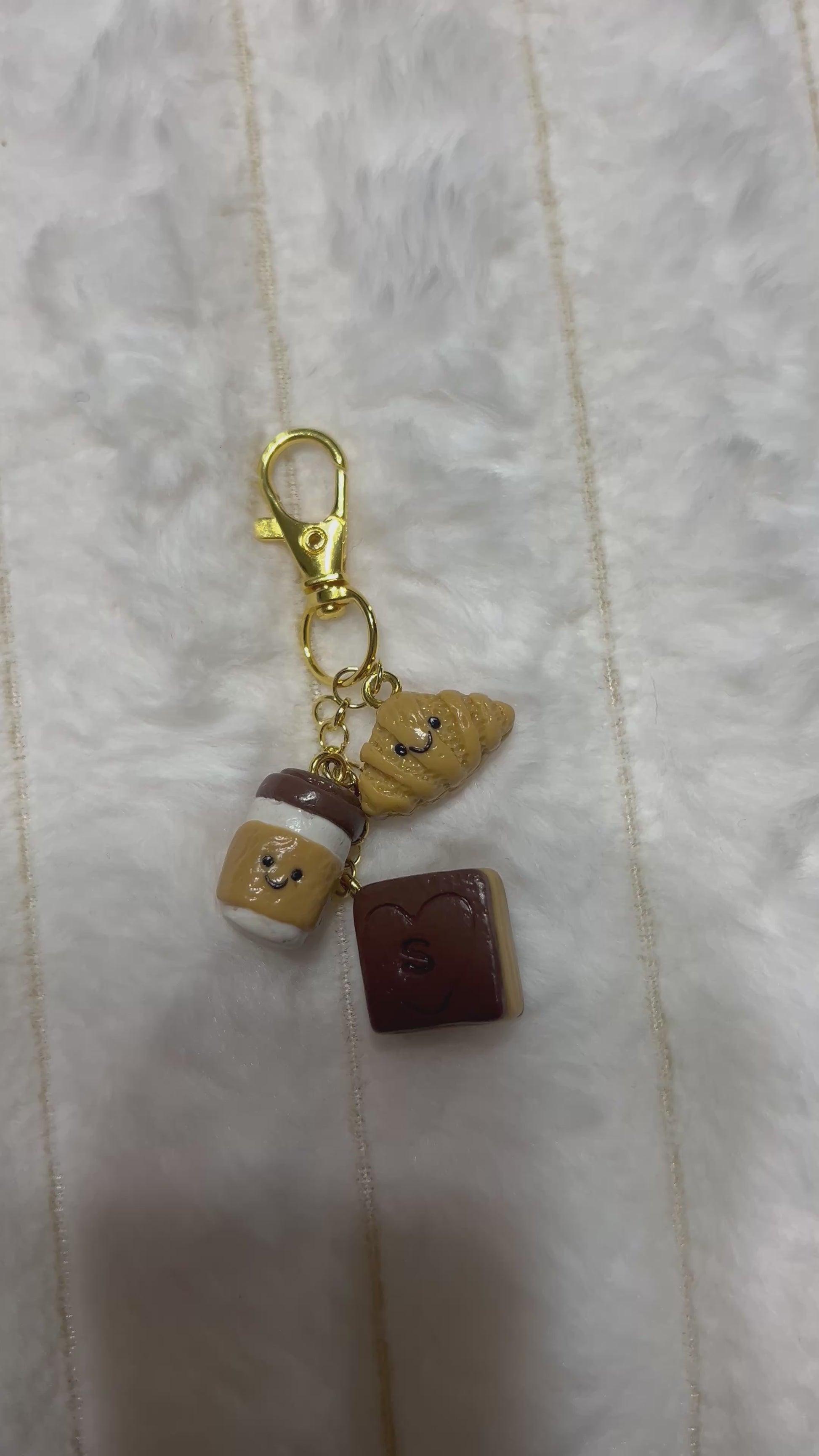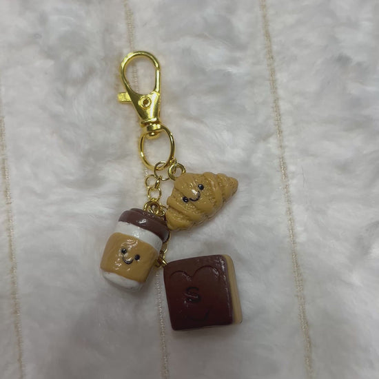 - Includes 3 charms: croissant 🥐, coffee/tea cup ☕, and book 📖
